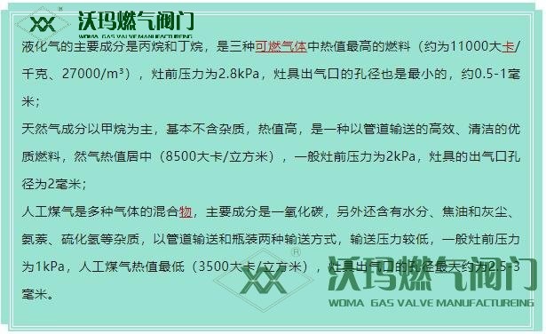 總結:再次強調:液化氣灶、天然氣灶與煤氣灶是不能通用的。以上就是玉環沃瑪小編整理的有關《液化氣灶、天然氣灶、煤氣灶通用嗎?有什么區別?》的大致內容,如有錯漏之處強朋友們及時指出小編會在第一時間改。想要了解更多燃氣灶相關信息,請收藏本站及時關注本站更新。玉環沃瑪燃氣閥官方網址:m.wjqcc.cn